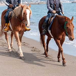友人同士なら、馬場の外に出て山、海、川など自然の中を馬とともに散歩できるホーストレッキングがおすすめ。ただ、ふざけたりして馬に迷惑をかけてしまわないようご留意を。
