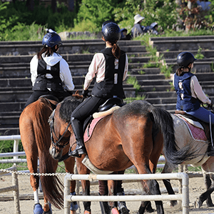 服部緑地乗馬センターは、大阪府豊中市服部緑地公園の敷地内にある緑豊かな乗馬クラブ。周辺には大阪空港 (大阪国際空港) や万博記念公園などがあり、観光地としても有名です。100頭以上の馬が在籍し、初心者から上級者まで対応したプランを提供しているので、家族旅行中のレジャーとしても人気を博しています。